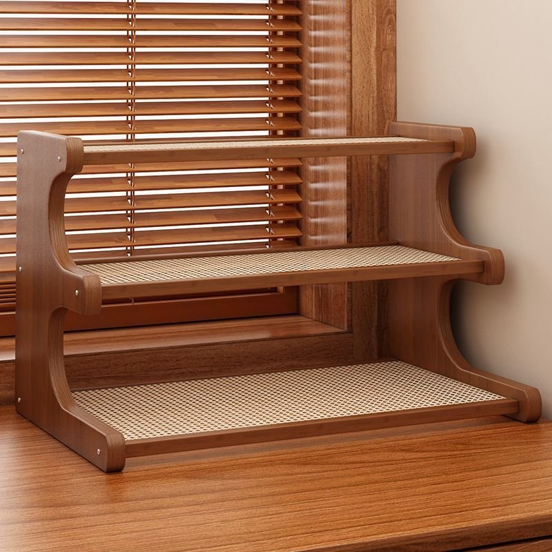 استعد لإعادة ترتيب مساحتك بأناقة مع هذا الرف الخشبي المتعدد الطبقات. صمم هذا الرف ليمنحك أقصى درجات التنظيم مع الحفاظ على مظهر جمالي مستوحى من الطبيعة، حيث يمتزج الخشب الطبيعي الدافئ مع تفاصيل “الراتان” الشبكية الأنيقة على الأرفف.
