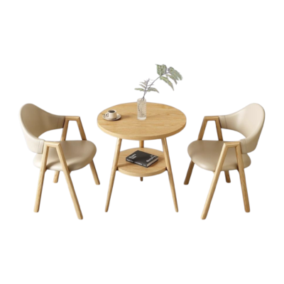 طقم طاولة قهوة مستديرة مع كرسيين بتصميم عصري - مجموعة ضيافة خشبية مريحة للمساحات الصغيرة